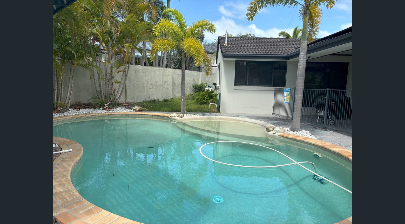 This amazing home has 4 separate living areas and and a sparkling inground pool.