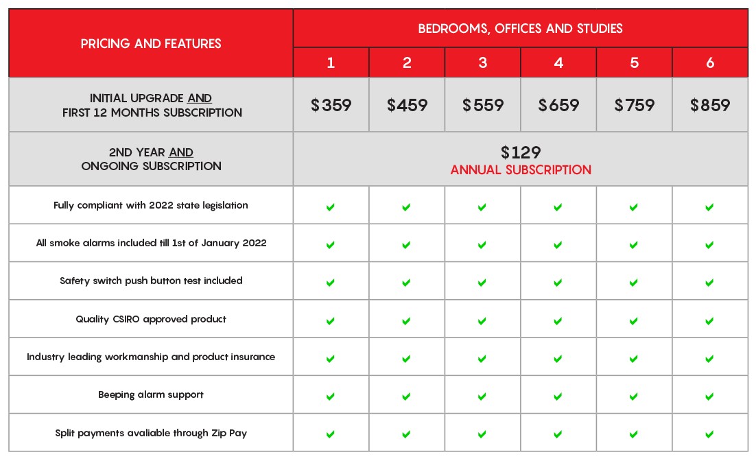 Current Smoke Alarm service providers will increase their subscription costs to cover the cost of installing compliant smoke alarms, which will then revert to a maintenance subscription.